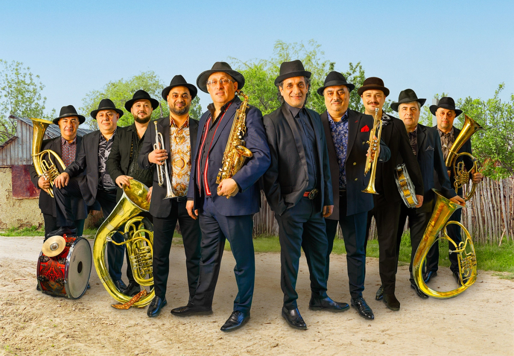 Fanfare Ciocarlia is one of the world’s greatest gypsy brass bands, a 24-legged Balkan brass beast whose eastern funk groove has torn up halls and festivals across the planet with their balkan brass sound. Their energetic performances and musical ingenuity winning them fans from Melbourne to Memphis, Tokyo to Toulouse. Growing up sons of farmers in the “hidden” village of Zece Prajini in north-eastern Romania, the band members learned their craft at the feet of their fathers and grandfathers, proudly approaching every concert as a challenge to both entertain audiences and keep the true spirit of Gypsy music alive. It is no small thing to note that Fanfare Ciocarlia singlehandedly are responsible for the re-emergence and great rise in popularity of balkan brass and the balkan brass movement from Eastern Europe.